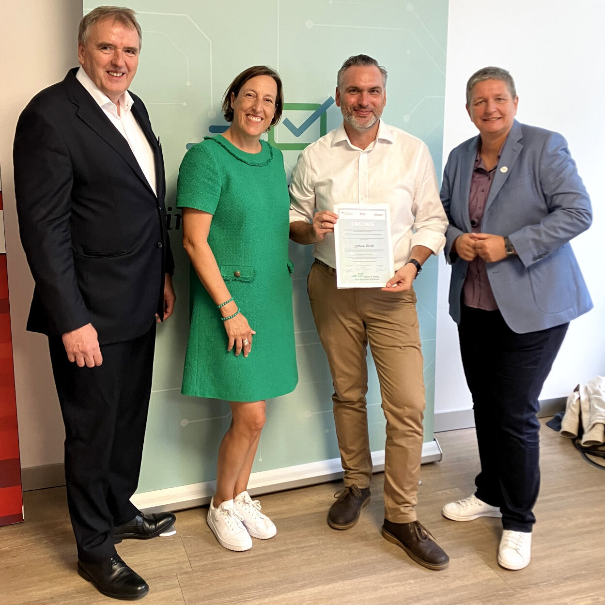 Das Foto zeigt v.l.n.r. Prof. Dr. Norbert Pohlmann, Vorstandsmitglied des Verbandes der Internetwirtschaft eco, Susanne Dehmel, Mitglied der Geschäftsleitung des Bitkom, Michael Barth, Abteilungsleiter Strategy bei der genua GmbH, und BSI-Präsidentin Claudia Plattner.