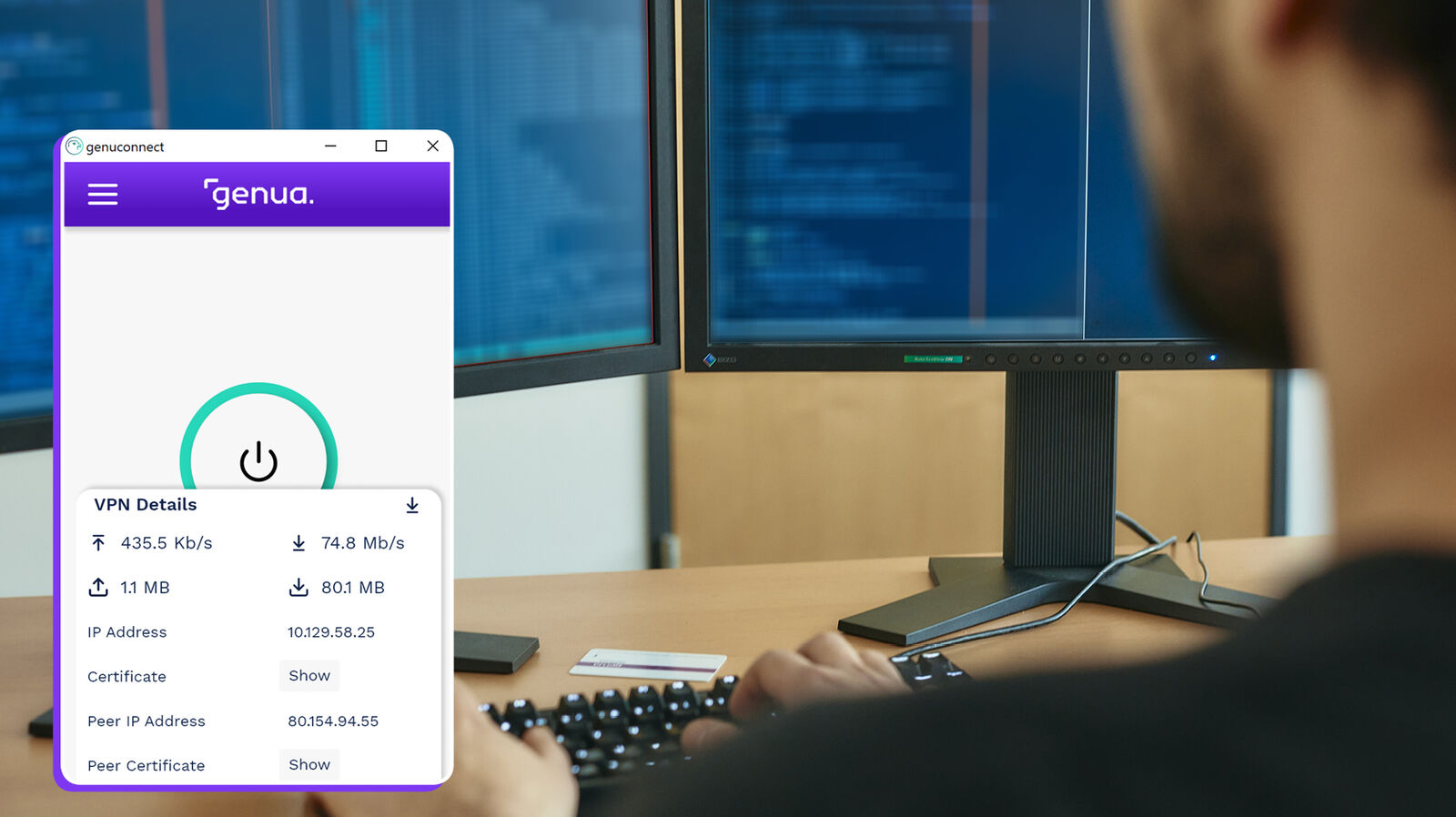 genuconnect kombiniert bewährte IPsec-Technologie mit BSI-konformen Kryptoalgorithmen. In Verbindung mit einer gängigen Smartcard sorgt der VPN Software Client auf höchstem Niveau für einen zuverlässigen Schutz vor Hacker-Angriffen oder unbefugtem Zugriff. Alle Kryptoanteile der VPN-Technologie wurden von genua, einer Tochtergesellschaft der Bundesdruckerei-Gruppe, in Deutschland entwickelt.